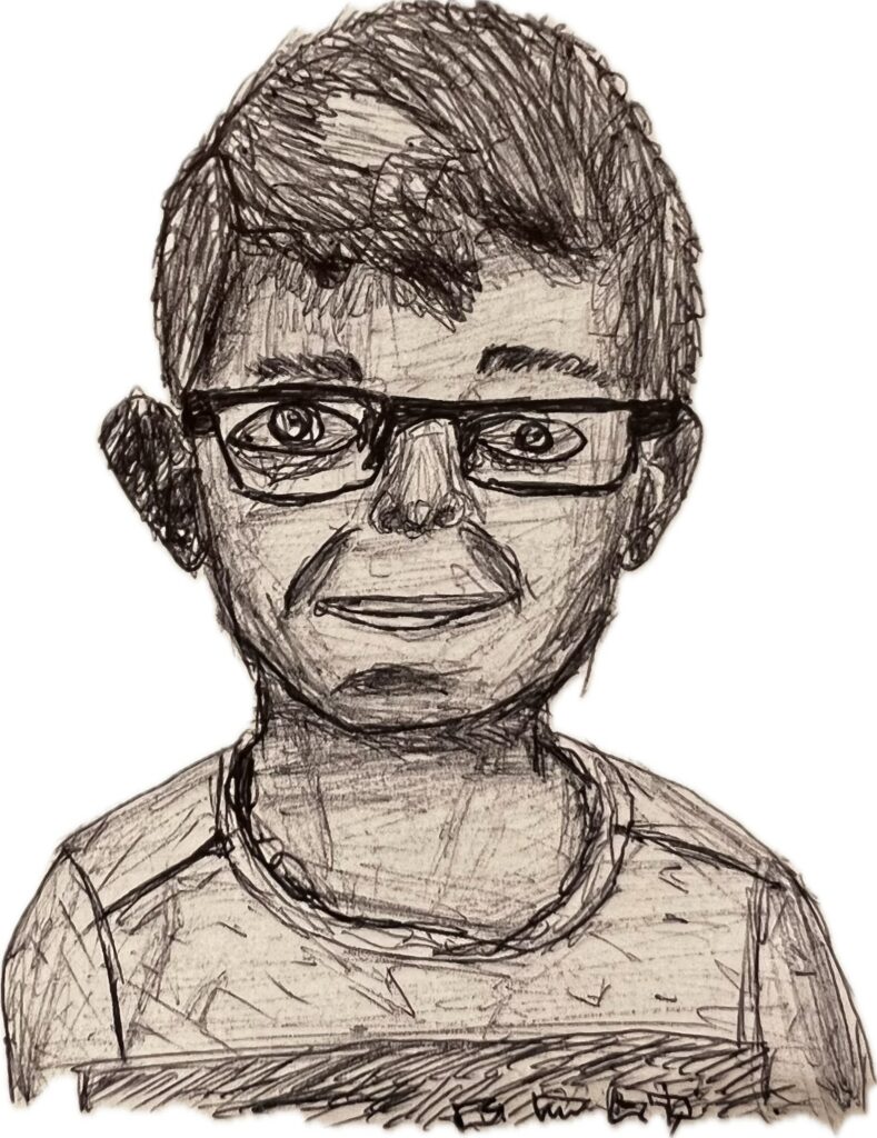 Dies ist ein Bild, das ich während dem Kunst Unterricht gemalt habe. Wir hatten 10 Minuten Zeit und nur ein Portrait von uns selbst und einen Kugelschreiber.
